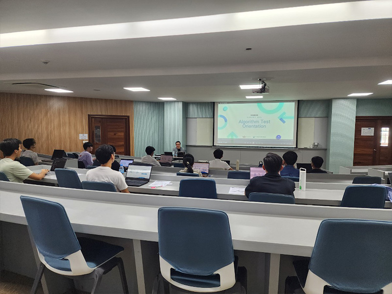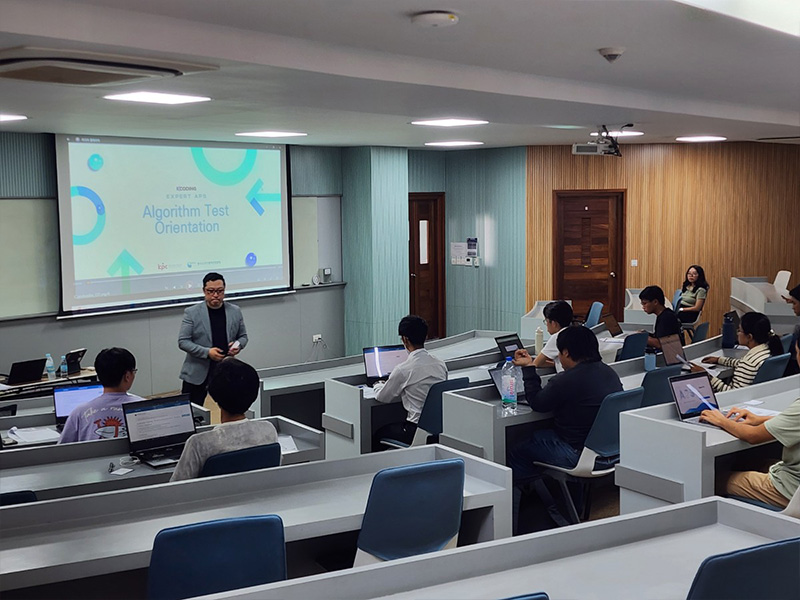K-Coding conducted a coding test for students at the American University of Phnom Penh (AUPP) to assess and identify global IT talent. This test evaluated practical problem-solving skills and served as a crucial step in connecting outstanding candidates with global companies. Through this initiative, we aim to contribute to the growth of Cambodia’s IT industry and support the development of internationally competitive developers.